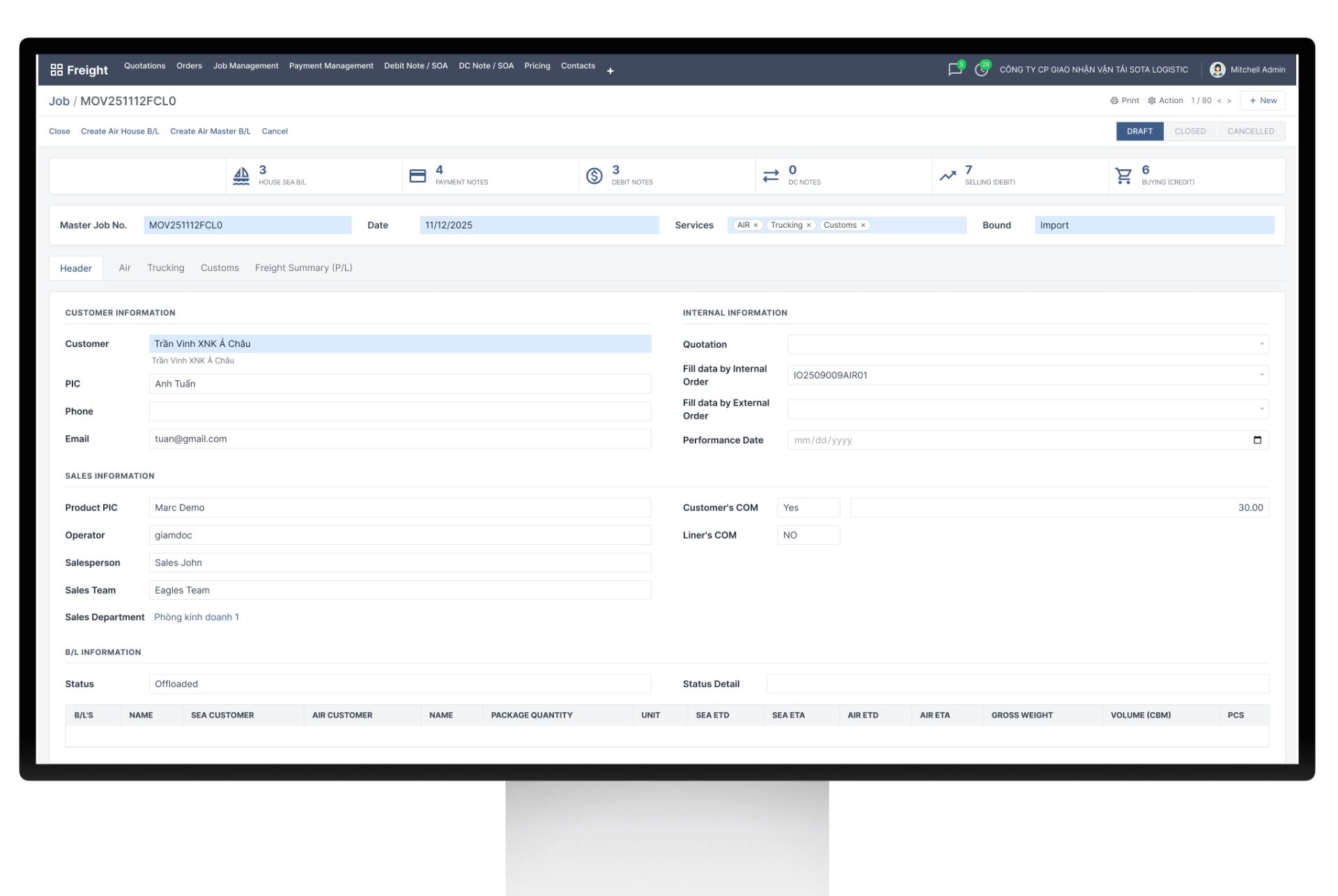 Automated Debit/Credit Notes linked with Jobs and House/Master B/Ls.