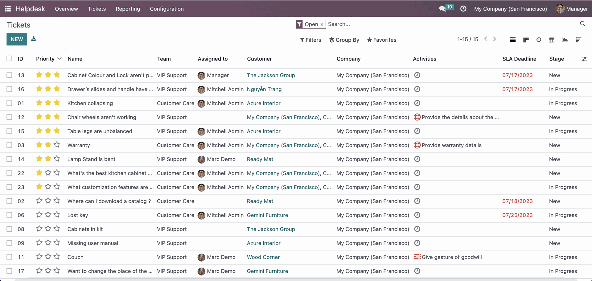 - Support Ticket: Quản lý yêu cầu hỗ trợ khách hàng, theo dõi trạng thái xử lý tập trung.