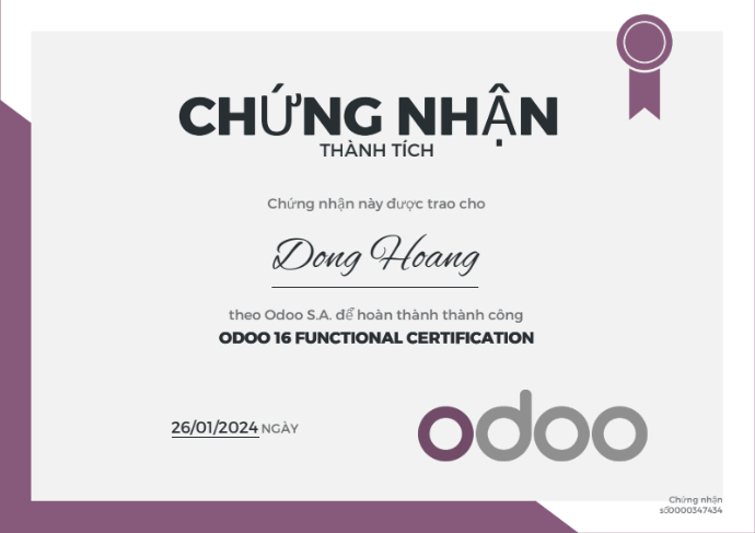 Chứng nhận từ Odoo