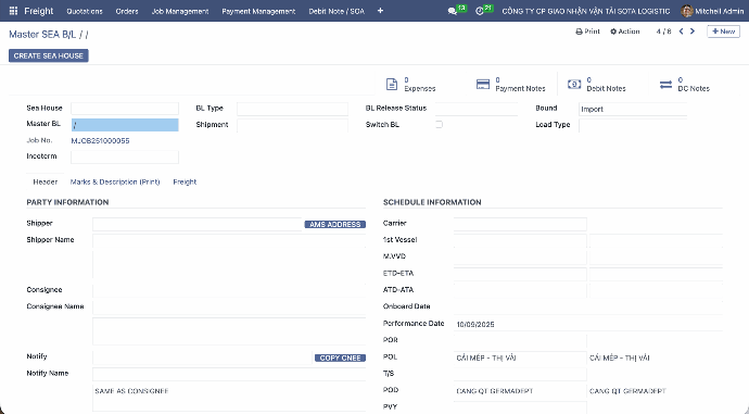 - Hệ thống tích hợp Công việc với B/L Nhà/Chủ để tự động tạo Ghi chú Tín dụng, đảm bảo kiểm soát chi phí chính xác cho mỗi lô hàng.